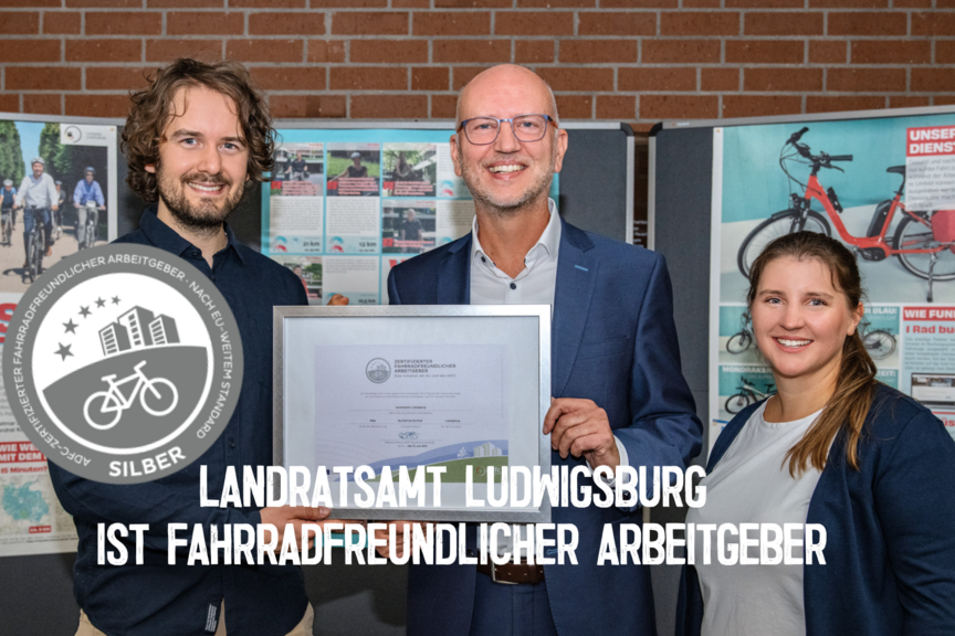 Das Zertifikat in Silber gilt für den Hauptstandort Ludwigsburg und wurde zu Beginn des Gesundheitstages des Landratsamtes von ADFC-Pressesprecher Tobias Husung überreicht.